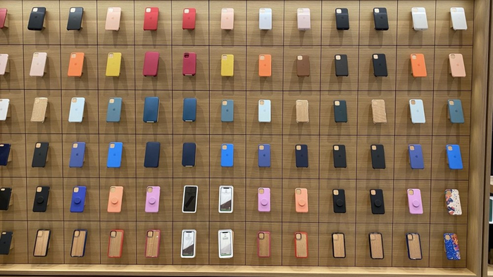 除了建筑基材的不同外,原有店铺内的摆放设置也进行了大变样。苹果将原有的产品展示—天才吧的二元结构进行细化,新增了“互动坊”、“视频墙”、“景廊”等新设计,最标志性的莫过于琳琅满目的配件墙。