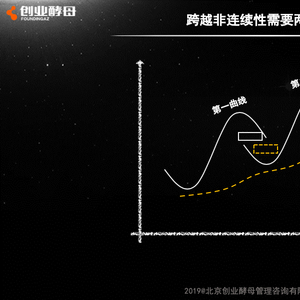 到了第三个阶段,企业已经很平稳,从业务发展的曲线能看到的却是下行,所以需要的是组织变革,只有组织变革才能让这条曲线上扬。