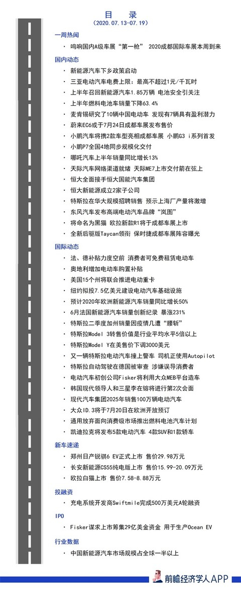 前瞻电动汽车产业全球周报第74期:大show来了!疫情后首个A级车展本周上演