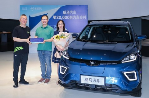 7月6日,威马汽车创始人、董事长、CEO沈晖向第3万辆威马EX5车主交付新车