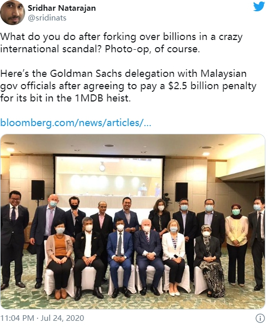 高盛方面也证实,称其原则上已和马来西亚政府达成协议,以解决该公司涉及1MDB基金的所有刑事和监管程序。