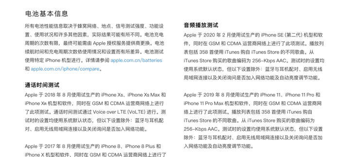 虽然苹果在官网底部公布了其大致的续航测试方法,但并没有具体细节,其相关数据一直不能叫人信服。