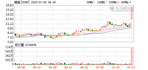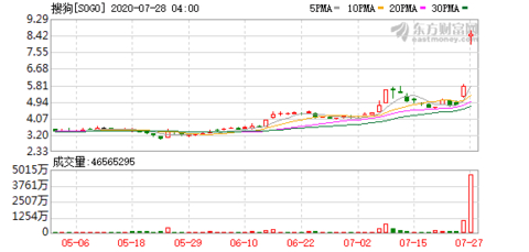 7月27日晚间,美股开盘后,搜狗(SOGO.US)和搜狐(SOHU.US)双双大涨,截至收盘,搜狗股价大涨48%,报收于8.51美元,总市值33.08亿美元。搜狐股价大涨39.96%,报收于15.55美元,总市值6.11亿美元。