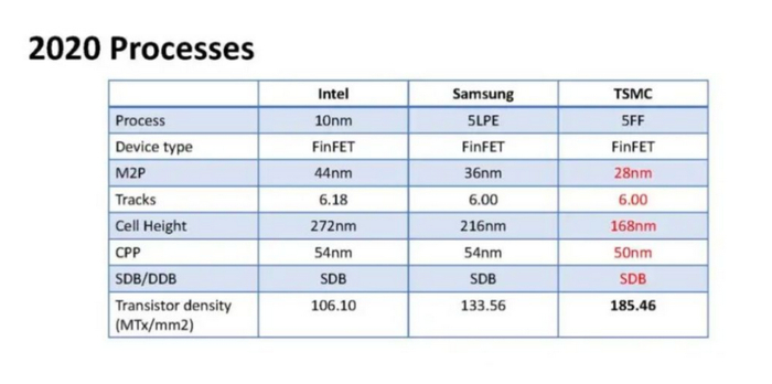 这段时间里,英特尔最大的问题,是没有搞清楚真正的对手是谁,没搞明白“谁是我们的敌人?谁是我们的朋友?”这个首要问题。就在英特尔快乐挤牙膏的时候,台积电一直没闲着。2014年时,台积电主要量产的还是20纳米的产品,名义上落后于英特尔,实际上落后的更多。这是因为台积电、三星等工艺与英特尔有所不同,比如台积电7nm+的晶体管密度,才与英特尔10纳米技术相同。但是台积电的步伐很稳健,2016年主打10纳米,2018年7纳米上量,到了2019年7nm+量产,终于在晶体管密度追平了英特尔。而2020年5nm量产后,实际上甩开了英特尔。