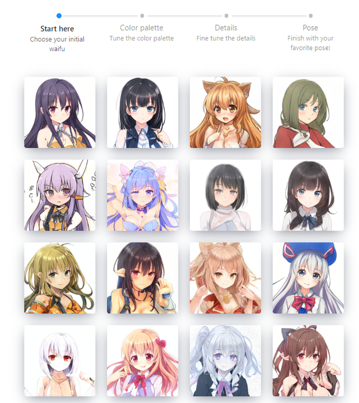 在 Waifu Labs 网站上生成的 2D「老婆」。