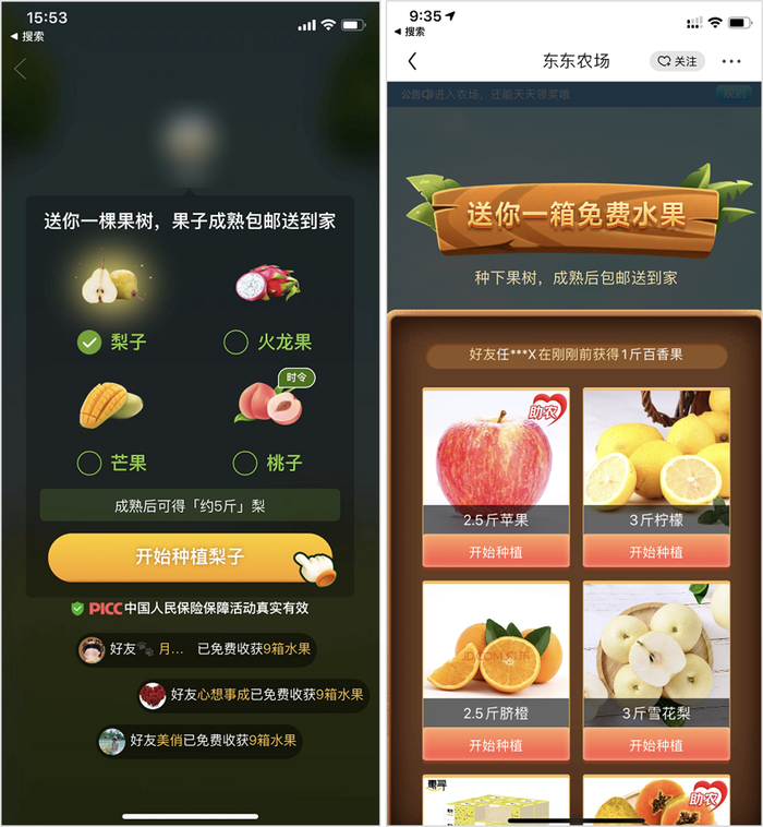 拼多多这么好的成绩摆在面前,淘宝、京东们自然不会放过这个机会,全都跟风在自家的 App 里面做起了种水果的游戏。