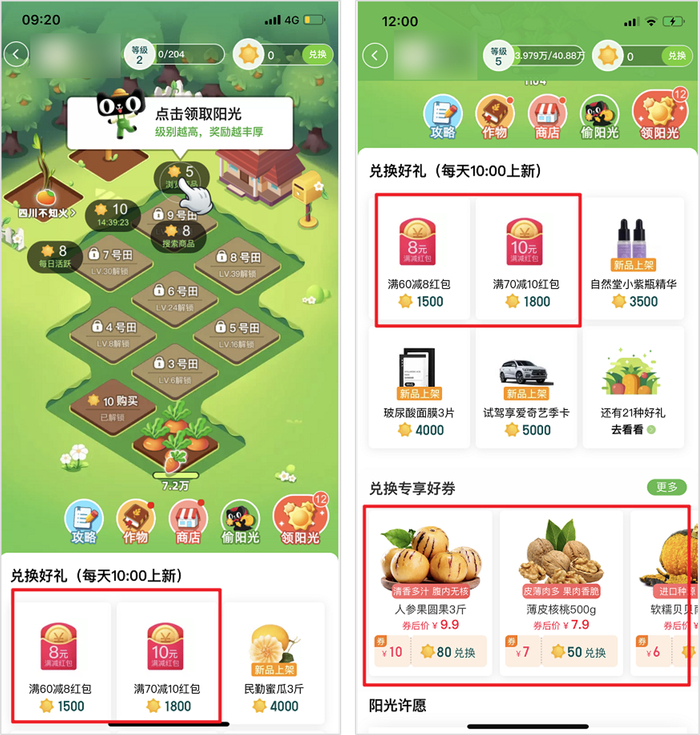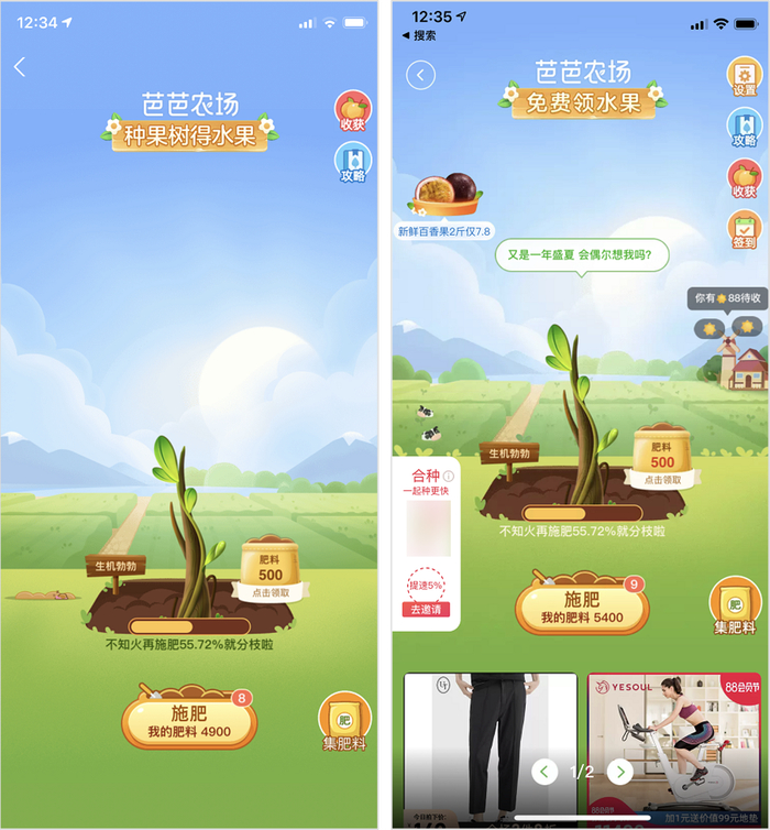 左 支付宝里的芭芭农场,右 淘宝里的芭芭农场