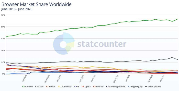 谷歌的这个计划,也并非信口开河。据数据分析公司StatCounter称,谷歌Chrome浏览器占整个网页使用量的65%。数十亿Android用户(译者注:谷歌领导开发的手机操作系统)的手机默认浏览器都是Chrome浏览器,这一事实进一步巩固了其主导优势地位。