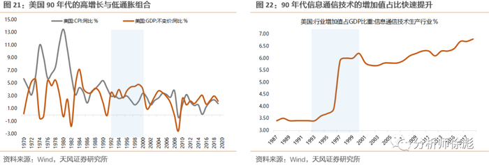 (1)科网行情缘于宏观高增长低通胀、科技从电子时代走向计算机时代、政策利好不断等。1995年1月至2000年2月,纳指上涨525%,标普500上涨192%。