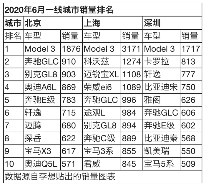 数据显示,今年6月Model 3在华销量为14977辆,且在北京、上海、深圳等重要市场都占据了销量排行榜第一名,不分燃油或新能源。