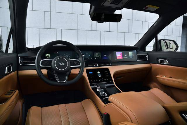 外观设计方面,新车没有任何模仿的痕迹,且没有新手造车的用力过猛。简洁的横向转饰条贯穿前脸和大灯,车头还保留了大面积的进气格栅,和这个体型相得益彰。整个车身线条都比较克制,尽量展现出大空间的SUV该有的气场。