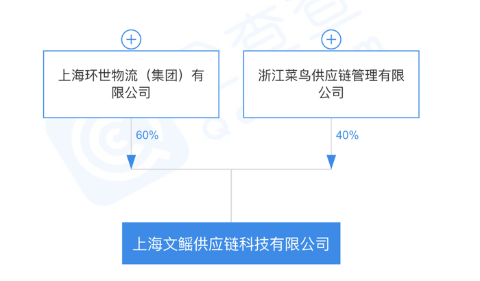 据企查查官方资料显示,上海文鳐供应链科技有限公司的两大股东分别是上海环世物流(集团)有限公司和浙江菜鸟供应链管理有限公司,前者占股60%,后者占股40%。