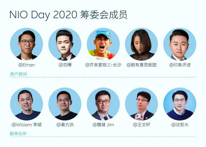 5位顾问将和李斌、秦力洪以及蔚来汽车的工作人员一起组成NIO Day 2020筹委会,共同商讨今年NIO Day的总体规划以及筹办方式。