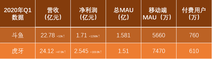 对比斗鱼和虎牙 2020 年 Q1 数据,可以看到两个平台营收、总 MAU 等数据差距不大,且发力点都在游戏直播。Q2 财报显示,斗鱼 Q2 直播收入约为 23.20 亿元(3.278 亿美元),占总营收的 92.5%。