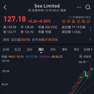 Shopee母公司Sea的股价走势