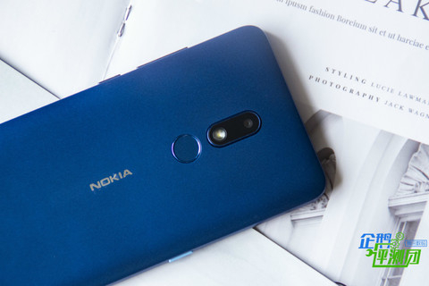 背部则是久违的后置指纹模组,以及一颗800万像素摄像头及闪光灯组成的摄像模组,正中为诺基亚的LOGO,这一布局也算是诺基亚的一个经典设计语言,后盖采用聚碳酸酯材质,表面做了磨砂处理,手感不错,也不容易手滑,且能有效避免沾染指纹。