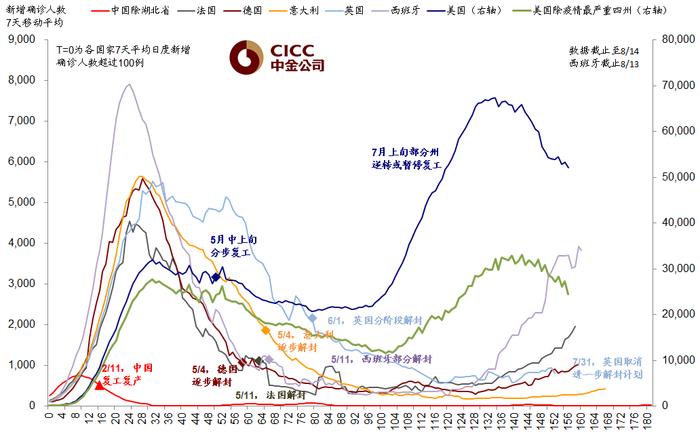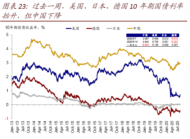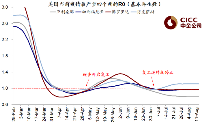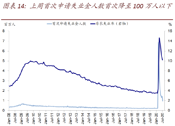 公共卫生事件见顶回落的逻辑链条为复工有望逐步重启、经济数据进而修复、故美债利率、市场风格、甚至特朗普总统的支持率都与其走势高度相关。另一方面,近期披露7月数据整体依然向好,似乎并未受到公共卫生事件复发导致复工停滞的太多拖累。