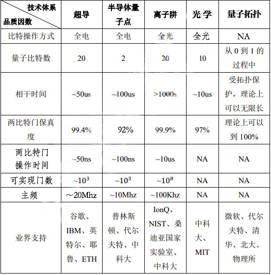 目前量子计算的主要技术路线(数据来源:华为、赛迪)
