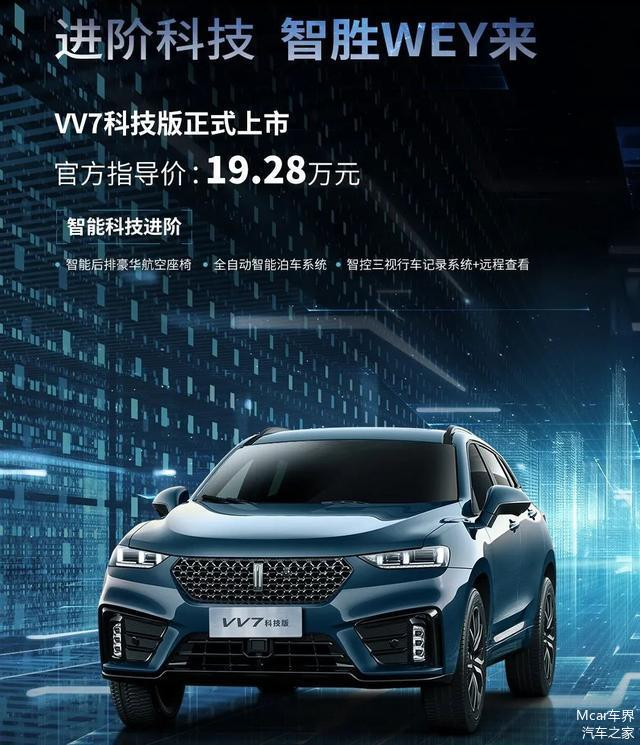 8月20日,WEY科技版正式上市,官方指导价为19.28万元。新车将相比于现款 VV7旗舰型车型贵4000元。