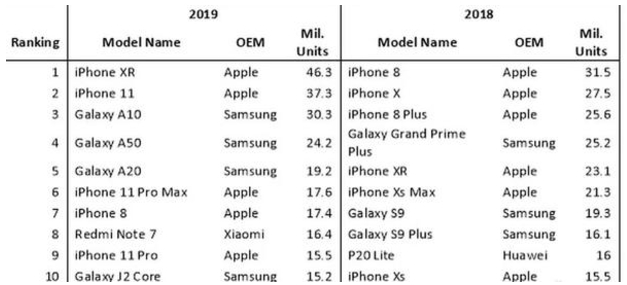 想要挽留住这些用户或者吸引更多的新用户,苹果用最简单粗暴的方法——降价,所获得的成果也是显而易见的。就拿iPhone XR举例,在发布当初由于价格太贵,在销量方面算不上惨淡,但绝对是不符合苹果的期望的,在经历一次又一次的官方降价后,iPhone XR成为市面上最值得购买的苹果产品之一。具体表现有多好,从外媒给出的这份年底销量机型排行榜单就能看出。