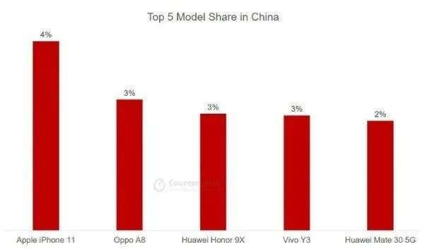 而同样的“真香”定律,在iPhone 11上再次上演,经过几次官方降价后苹果已经将 iPhone 11 的售价调低至5500元左右,并且在国内一些第三方电商平台中的售价更低。根据权威机构Counterpoint给出的数据来看,目前iPhone 11在国内的份额已经达到了4%,这是一个十分可怕的数字,毕竟这是一台“过气”的4G手机,在这种情况下iPhone 11依旧可以拿下国内单机型份额榜首,足见消费者还是很吃这套的。