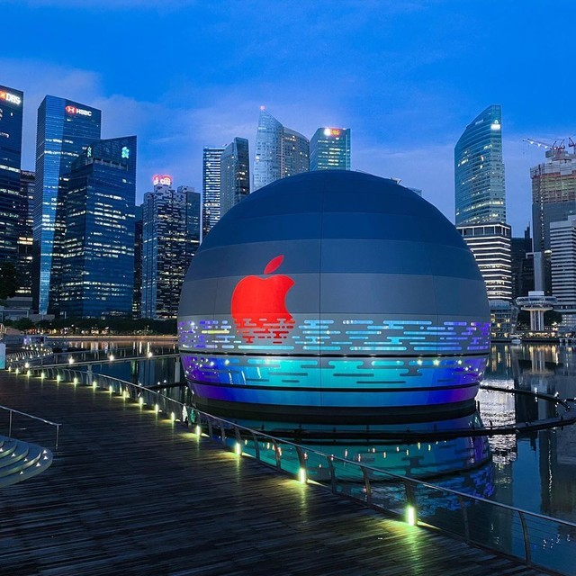 首个水上苹果零售店落户新加坡亮相新加坡滨海湾,是新加坡第三家苹果门店,名为Marina Bay Sands,建筑呈圆球形,完全建在水中,顾客需从水上步道或从水下通道入内,开业时间将在近期公布。