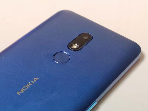背部设计元素也较为简单,沿着中轴线分别是单摄像头+闪光灯模块、圆形指纹识别按钮以及 “NOKIA”标识,干脆利落。