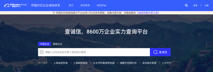 在百度亲自下场前,阿里巴巴在2016年就推出了面向中小企业的企业诚信服务体系,包括企业电子通行码、信用评级、信用报告、风险云图四个部分,被运用在企业各个商业场景中,助力中小企业融资。曾经由“两查一信”主导的企业信用市场,如今正在成为互联网巨头的新战场。