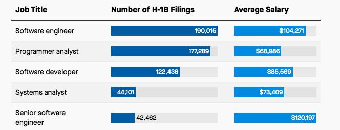 当然,这两个属于特殊现象。因为申请H-1B签证的软件工程师有大约19万人,而他们的平均工资仅略高于10万美元。