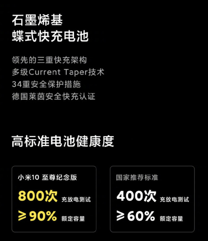 不仅在充电上拖后腿,苹果在电池的选择上也极为保守。锂电池随着充放次数的增多,其额定容量会变少,以80%的电池容量(健康度)作为基准线,iPhone只能做到500次循环,而安卓旗舰如今普遍能做到800次,最新的小米10至尊纪念版甚至能在800次循环后,电池容量仍在90%左右。
