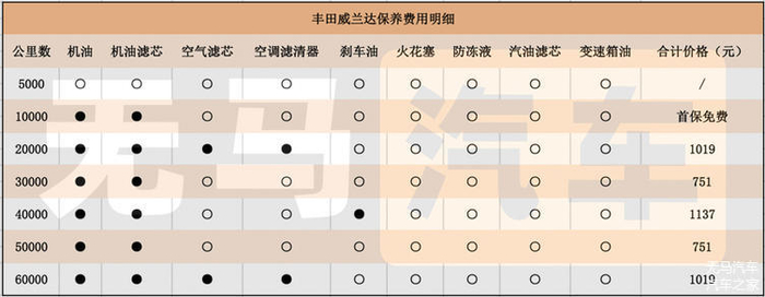 与丰田RAV4一样,威兰达同样是一万公里一保,相比于很多品牌5000公里一保的频率,威兰达省下来的时间成本和保养成本就非常有优势了。在个别小项目上,威兰达小保换机油机滤只需751元,而贵的一次保养则花去1137元。所以在这里按照一年行驶20000公里来算,三年下来就行驶了60000公里,一共就花费了4677元,平均每年花费1559元。当然,这个价格是撇除买保养套餐或代金券的结果,如果你有上述两项优惠方式的话,保养的价格就更低了。