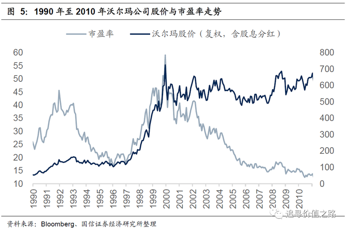 简单来说,《大钱细思》中讲的案例,就是说沃尔玛事后看业绩增长达到或者超过了预期,但因为1999年时估值太高,使得后续将近十多年里股价都没有给投资者带来回报。
