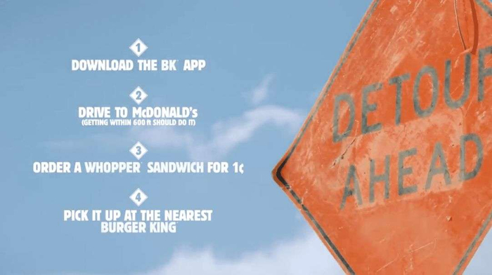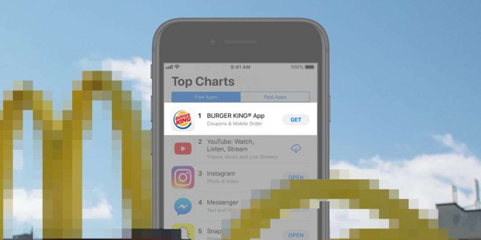 为了推广自家的APP,汉堡王推出优惠:1美分即可购得一个巨无霸汉堡,但前提是消费者必须在距离任何一家麦当劳门店600英尺(约183米)的范围内,下载汉堡王的官方APP,才能解锁这个优惠。