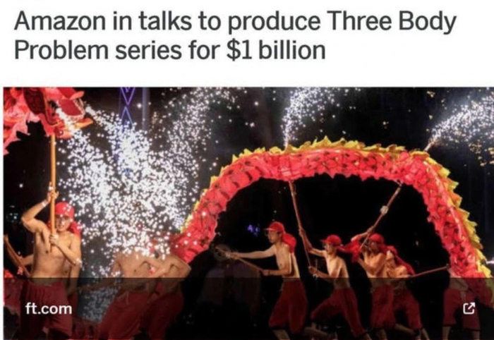 2018年3月,据英国《金融时报》报道称,亚马逊影业正在与有关方面洽谈《三体》小说的电视剧改编权。项目的投资总额高达10亿美元,如果项目成功,亚马逊版《三体》将制作成三季系列剧。