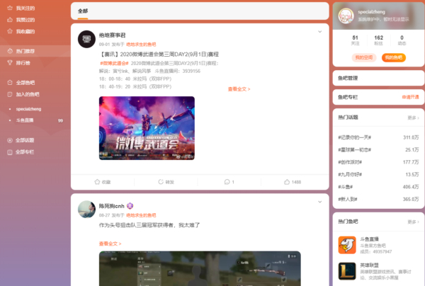 斗鱼捕捉到这一趋势后,也开始推动社区的进一步建设,其中“鱼吧”就是斗鱼用户观看直播及赛事活动之外,交流兴趣、分享生活的重要阵地。