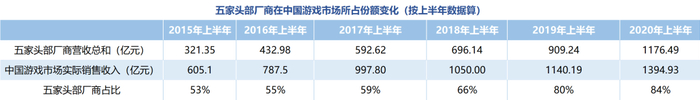 不过,这些利好实际上更多是大厂受益。据统计,上半年营收前五的腾讯、网易、三七互娱、世纪华通和完美世界,这五家厂商的市场占比已经高达84%。