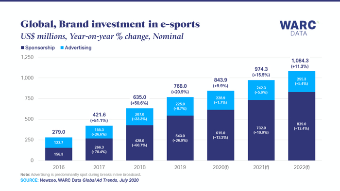 根据 WARC 的最新报告,即使疫情期间电子竞技用户增长的情况并不明显,电子竞技领域仍然是吸引广告主的热土。