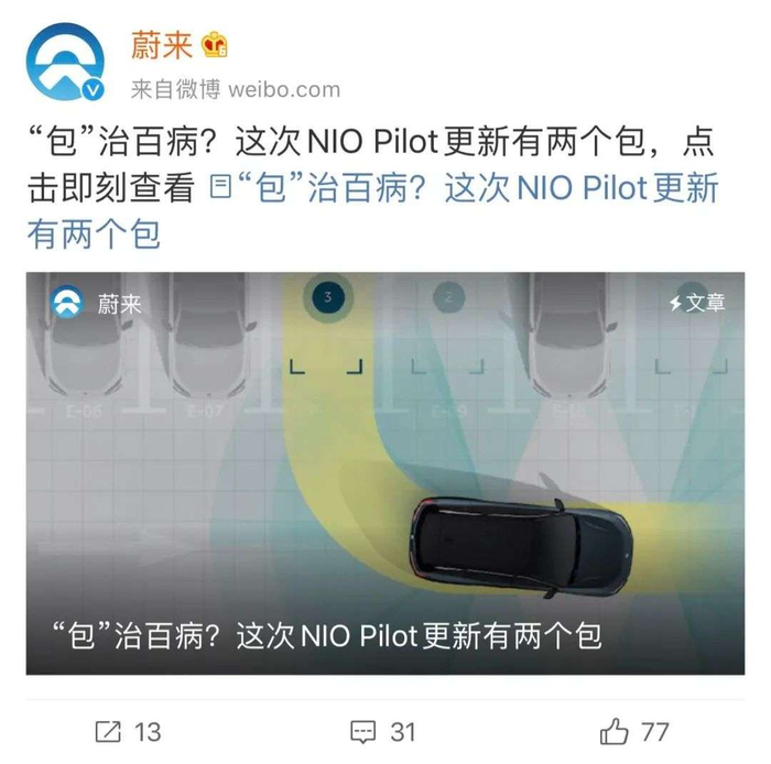 蔚来今年4月就推出了定价15000元的NIO Piliot精选包,包含了NIO Pilot自动驾驶系统的部分常用功能,涵盖了低速泊车和高速巡航等场景。