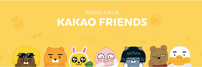 KAKAO FRIENDS起源于韩国移动聊天工具Kakao Talk所推出的表情包,包括RYAN、MUZI、APEACH、FRODO、NEO、TUBE、JAY-G、CON等8位主要角色组成,之后逐渐推出了多品类IP衍生品,成为时下最in的生活方式品牌,并且火爆亚洲。