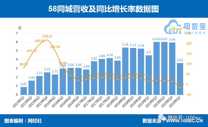 一直以来,58到家都是背靠58同城,为其提供流量和资本支撑。不过,目前的58同城自顾不暇。据58同城财报显示,其营收增速正处于放缓状态,2015年到2019年间,58同城的营收增速分别为169.8%、69.54%、32.62%、30.48%和18.56%。