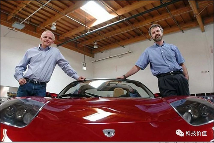 在2003年创立之初,这家公司其实有四位联合创始人:马丁·埃伯哈德(Martin Eberhard)、马克·塔本宁(Marc Tarpenning)、伊恩·赖特(Ian Wright)和JB·斯特劳贝尔(JB Straubel)。但这里没有马斯克的名字。