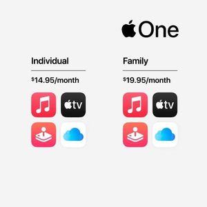 如上图所示,个人版在美区收费标准是每月 14.95 美元,包含的服务为音乐流媒体服务 Apple Music、电视服务 Apple TV+、游戏服务 Apple Arcade 和云储存服务 iCloud;家庭版每月 19.95 美元,包含服务项目与个人版相同,只不过 iCloud 的存储空间为 200 GB,而个人版是 50 GB。高级版比前两个订阅方案多了新闻服务 Apple News+ 和健身服务 Apple Fitness+,iCloud 的存储空间达到 2 TB,每月售价 29.95 美元。