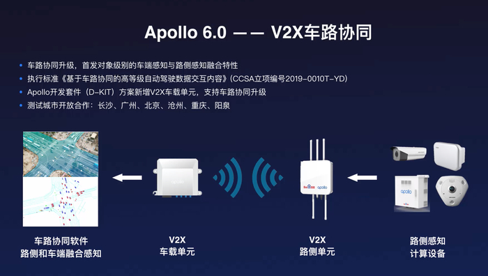 目前百度已联合政府相关部门,开放包括长沙、广州、北京、沧州等测试城市,进行V2X路侧测试合作,降低开发者使用Apollo开源车路协同方案的门槛。