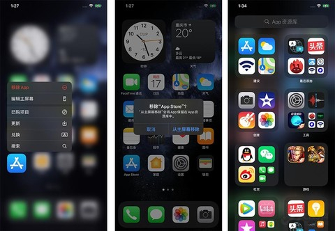 不管是现在的安卓(部分)还是以前的iOS,桌面上总放着系统应用,很多系统应用压根用不上,又没办法卸载,放在桌面上非常占空间,而在全新的iOS 14中,所有的应用APP都是可移除的,移除的系统应用,iOS 14会保留在APP资源库中,这样一来整个桌面都是自己常用的APP了。