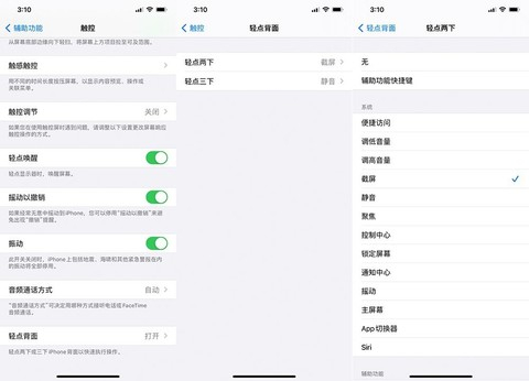 在iOS 14中我们还发现了一个快捷启动功能——轻点背面(在设置—辅助功能—触控—轻点背面)。我们可以通过点击手机背面两下、三下完成截图,也可以实现调节音量、静音、锁定屏幕、Siri等功能。刚开始使用时,还在担心误触问题,但实际上苹果的识别能力还是很强的,只要不可以去敲击背面是不会触发相应功能的。