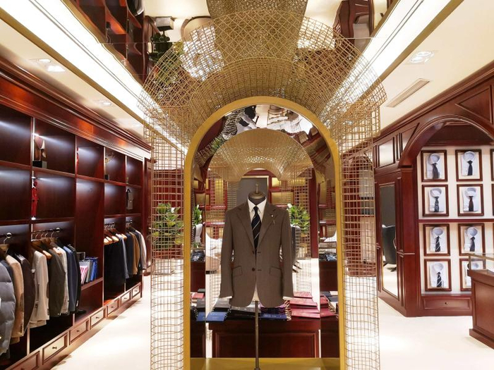 智源成衣于2018年4月开业,设有上服的职业服中心、衬衫中心、高定中心和1个设计师品牌集合店。走进店铺一楼,陈设与一般服装店无异,精致的旗袍、设计感女装占据了主要空间,既能现场购买,也供专业买手进行实地挑选。二层是男装全品类定制区,鞋、帽、西装、风衣、衬衫,“从头到脚”都能在此定制。此外,二楼也是上服集团技术中心的所在地,数字化、智能化的量裁、设计、打版、制衣都能在此实现。