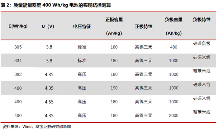 2. 硅纳米线400Wh/kg的电池质量能量密度提升路径测算