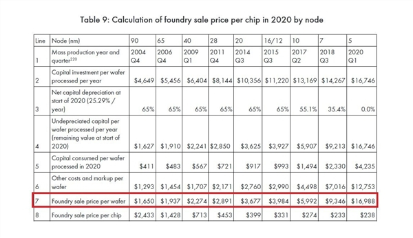 著名的半导体博客作者RetiredEngineer发布了一张表格,其中按台积电计算了2020年台积电每个假设芯片的销售价格。该表格的来源未提及,但可能来自于一份涵盖代工业务和制造商的最新半导体报告。