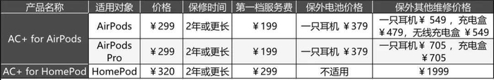 Apple 在之前为耳机产品也增加了 AppleCare+ 服务,价格如下: