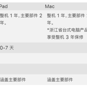这里简单概述一下:在不购买 AppleCare+ 的情况下,iPhone、Apple Watch 和 iPod touch 从购买之日起 1 年内享有整机质量问题保修服务;Mac、Apple 显示器、iPad 和 HomePod 从购买之日起 2 年内享有主要部件质量问题保修服务(浙江省台式电脑是 3 年);有线耳机从购买之日起 3 个月内享有质量问题保修服务。